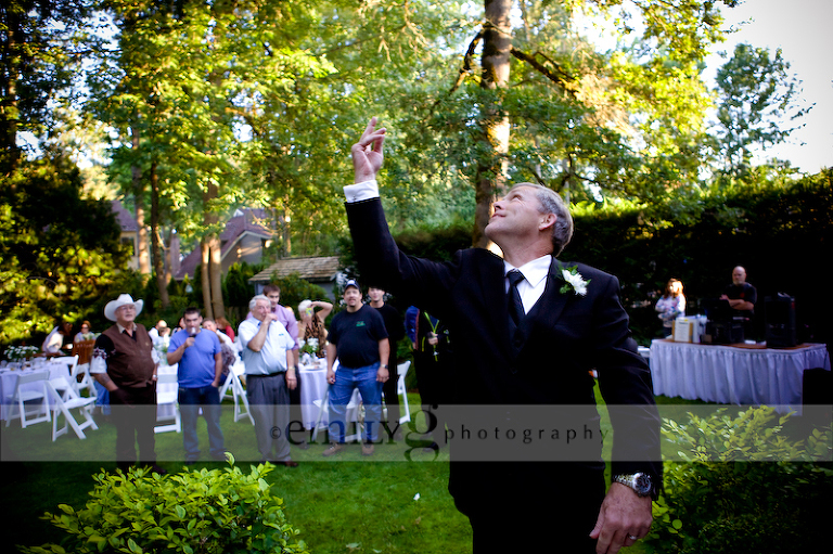 Our handsome groom tossing the guarder to the next lucky man.