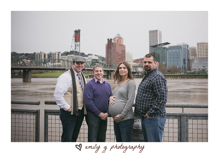 I have said it over and over, I adore Evan & Devin. When we first met to talk about their big day, I just knew these two would be wonderful. I had a great time capturing their love during a fun engagement session a few years back. And then the over the top fabulous big day too of course. So when Evan secretly told me a few months back they were expecting a baby girl I was THRILLED for them. I was  especially excited to capture the maternity session. To have two incredibly adorable and loving daddies, along with a set of super sweet birth parents for one big photo session was wonderful.  We met up on a cold & rainy day not too long ago and captured this special time.