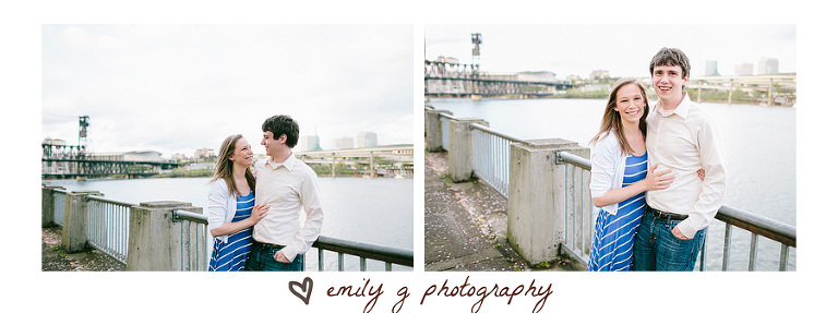I knew from the first meeting Lauren & JJ would be fun to capture. Seeing them together makes me smile, they have wonderful chemistry, and are super cute to boot. How could I not love them in-front of the camera! Just a few weeks ago we lucked into a warm sunny evening (a break in the rain yay!) for an engagement session. We spent some time downtown Portland, checking out the waterfront, and making some images.